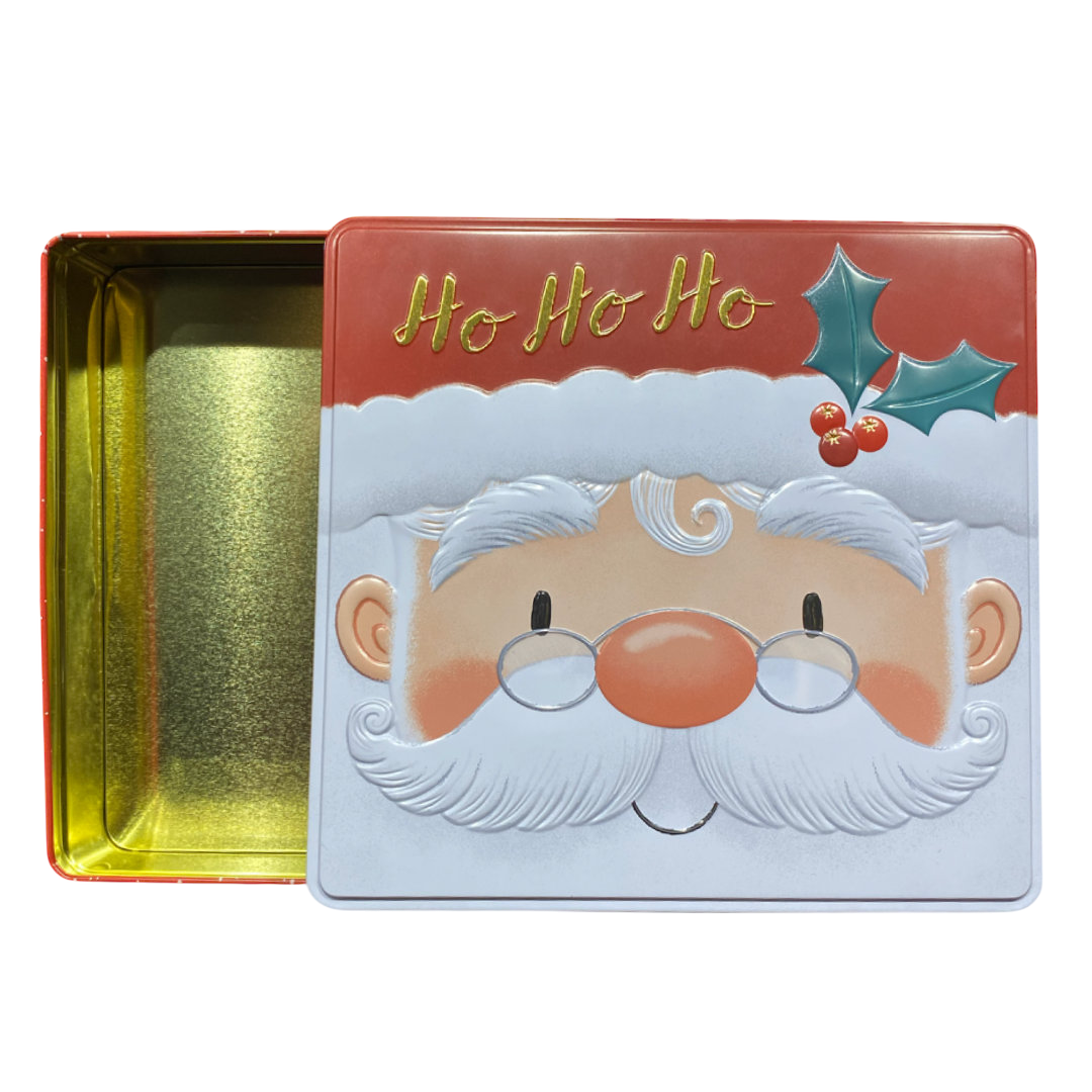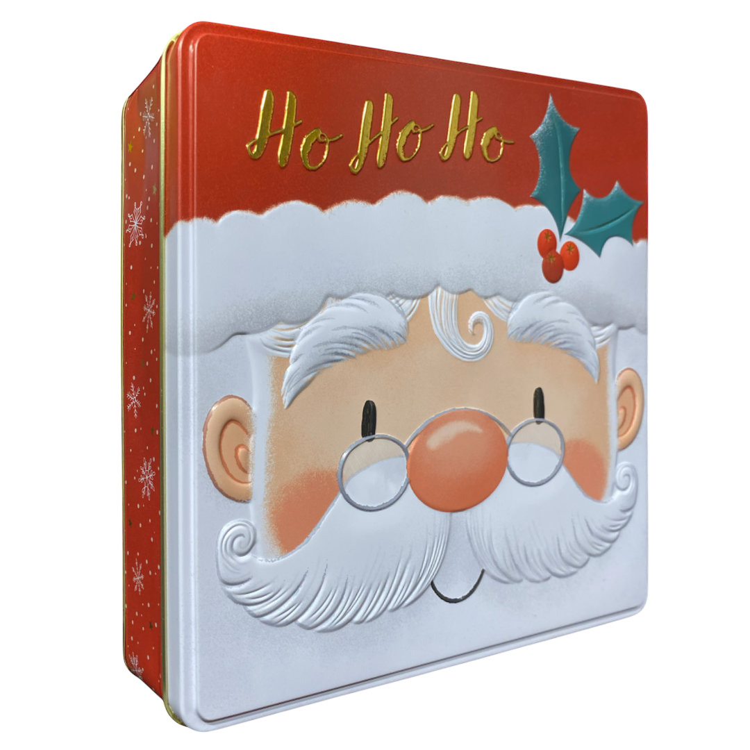 Scatola rettangolare “HoHoHo” con simpatico Babbo Natale. La scatola è perfetta per conservare i biscotti di Natale o per regalarli ai vostri cari!